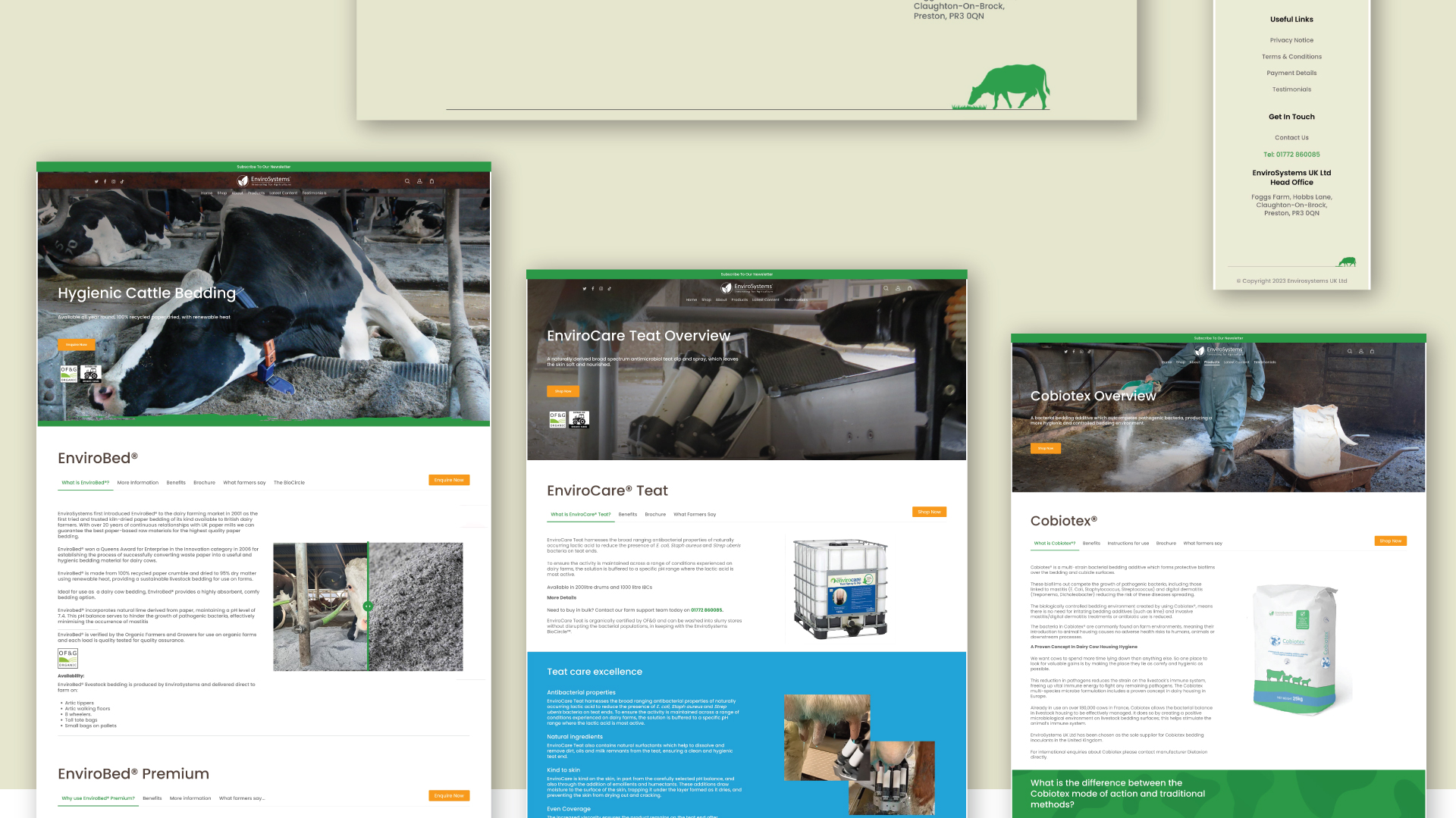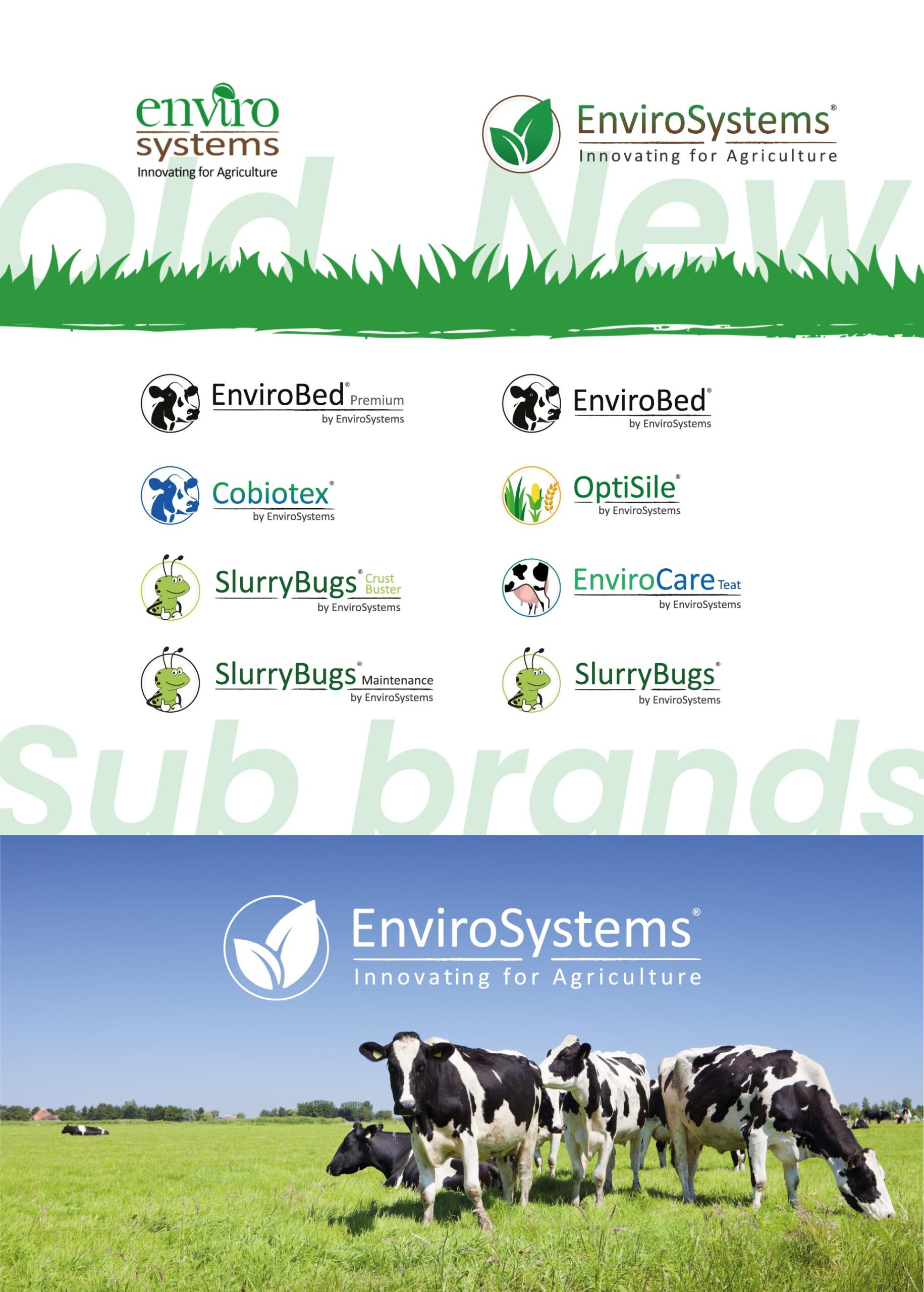 EnviroSystems is a company dedicated to improving farm productivity through soil fertility solutions and sustainable waste management products. Initially, they approached me for a website redesign. After presenting my first design concepts, they entrusted me with refreshing their logo as well. The challenge was to create a symbol that united their main brand and its sub-brands under one cohesive mark.